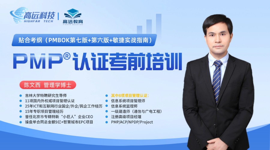 本线上视频课程由高远项目管理软考专家讲师陈文西老师主编和讲解。